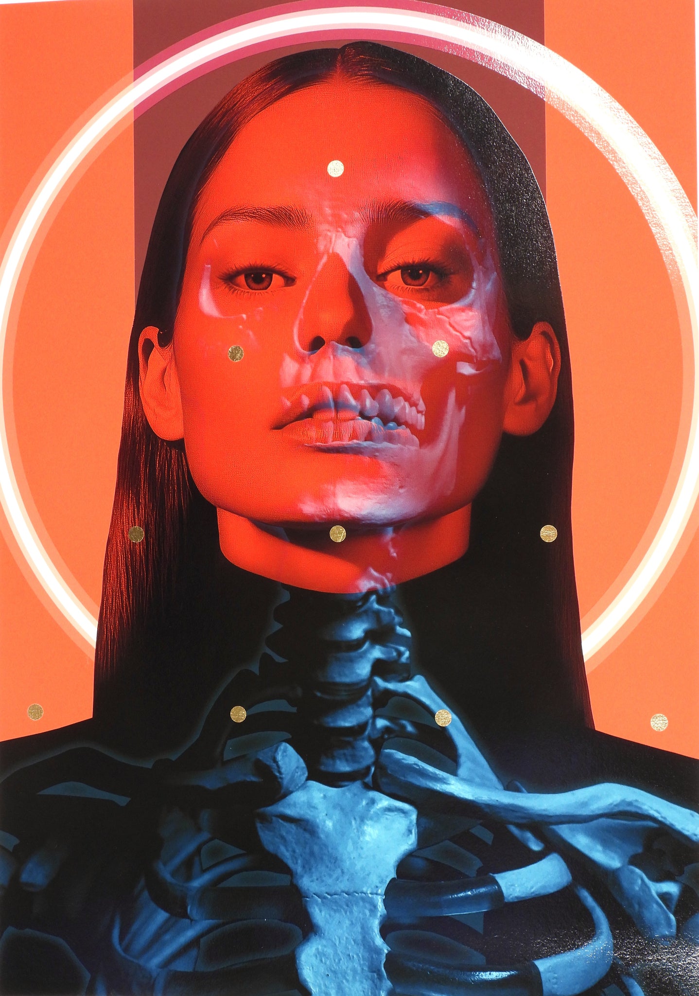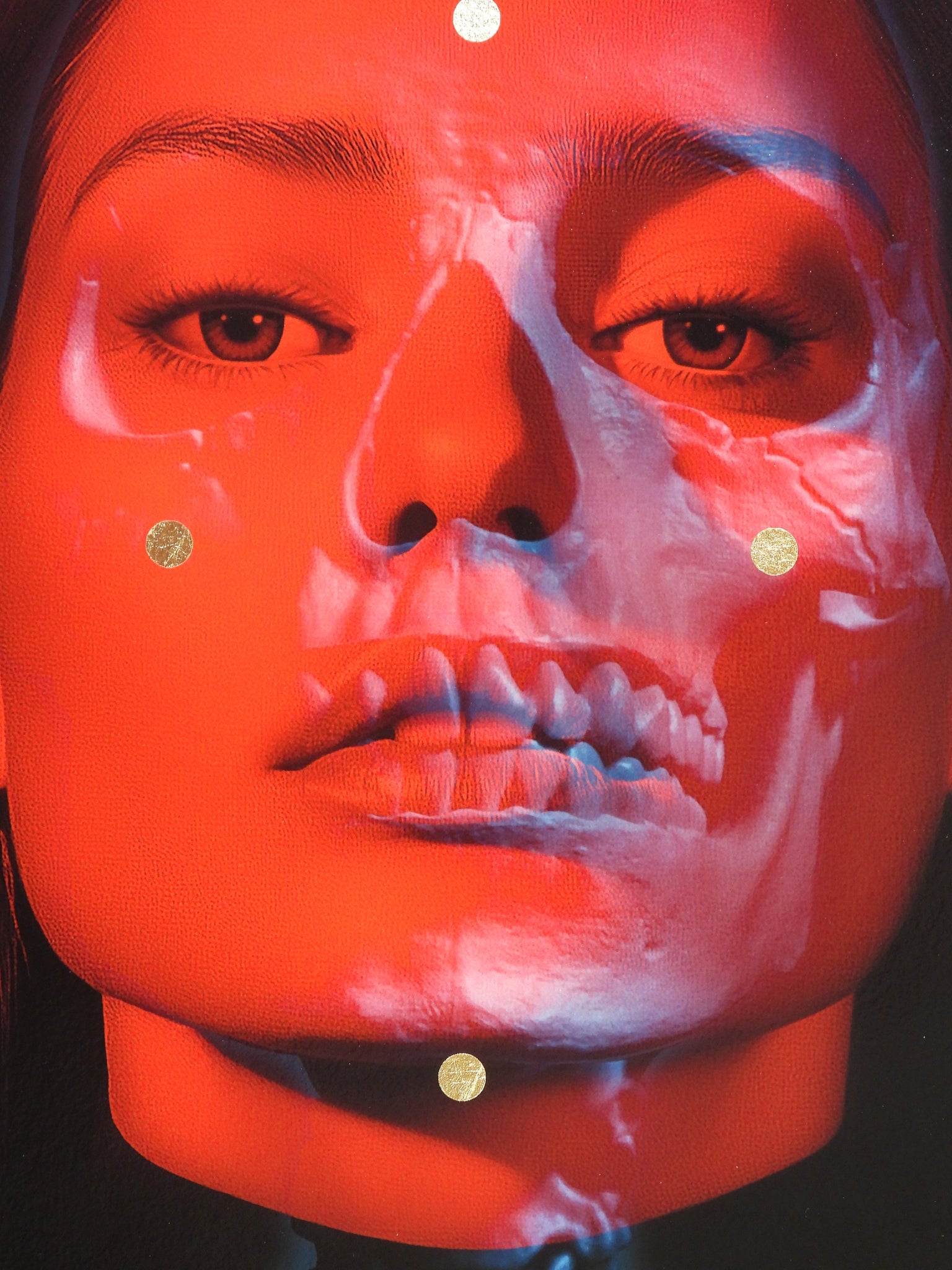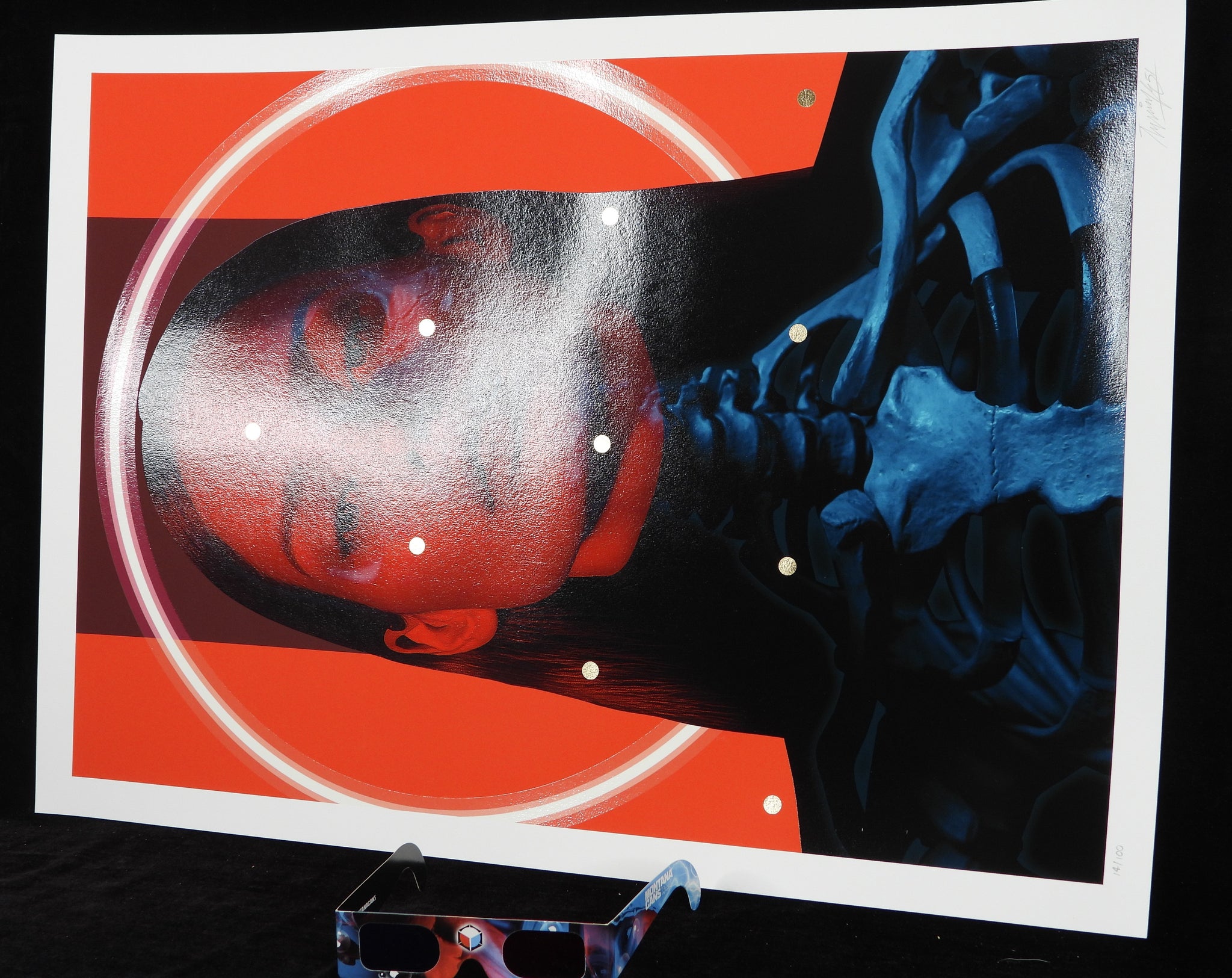 digigraphie et Sérigraphie avec feuille d'or + lunettes bleu rouge / digigraph and screenprint with gold leaf + bleu red glasses
