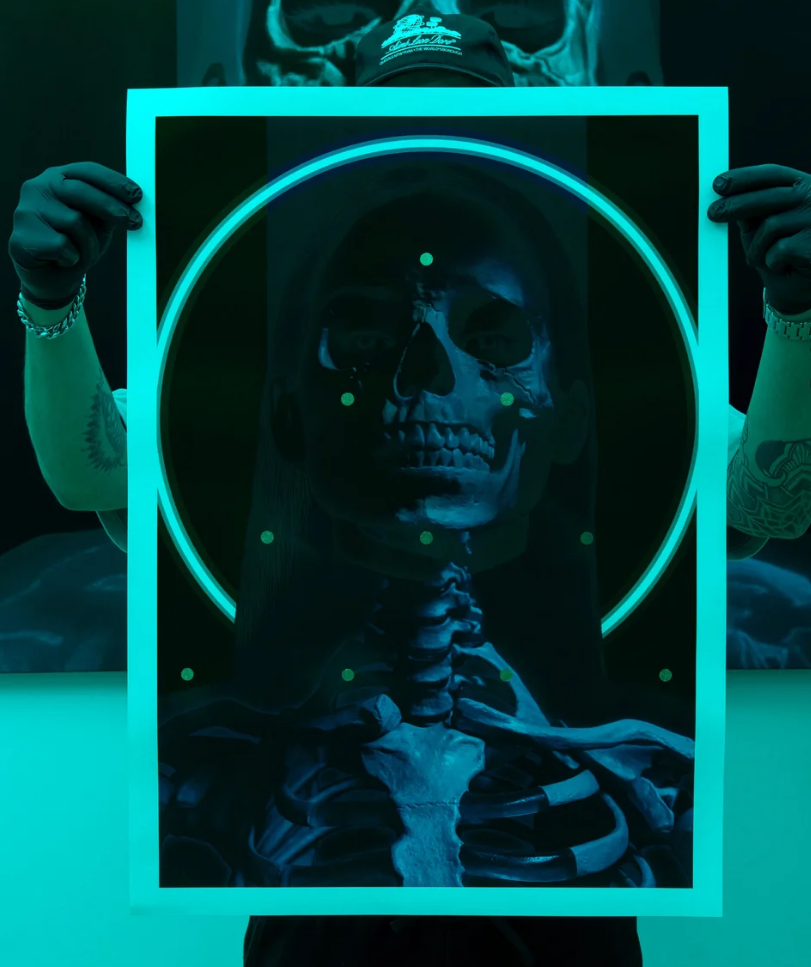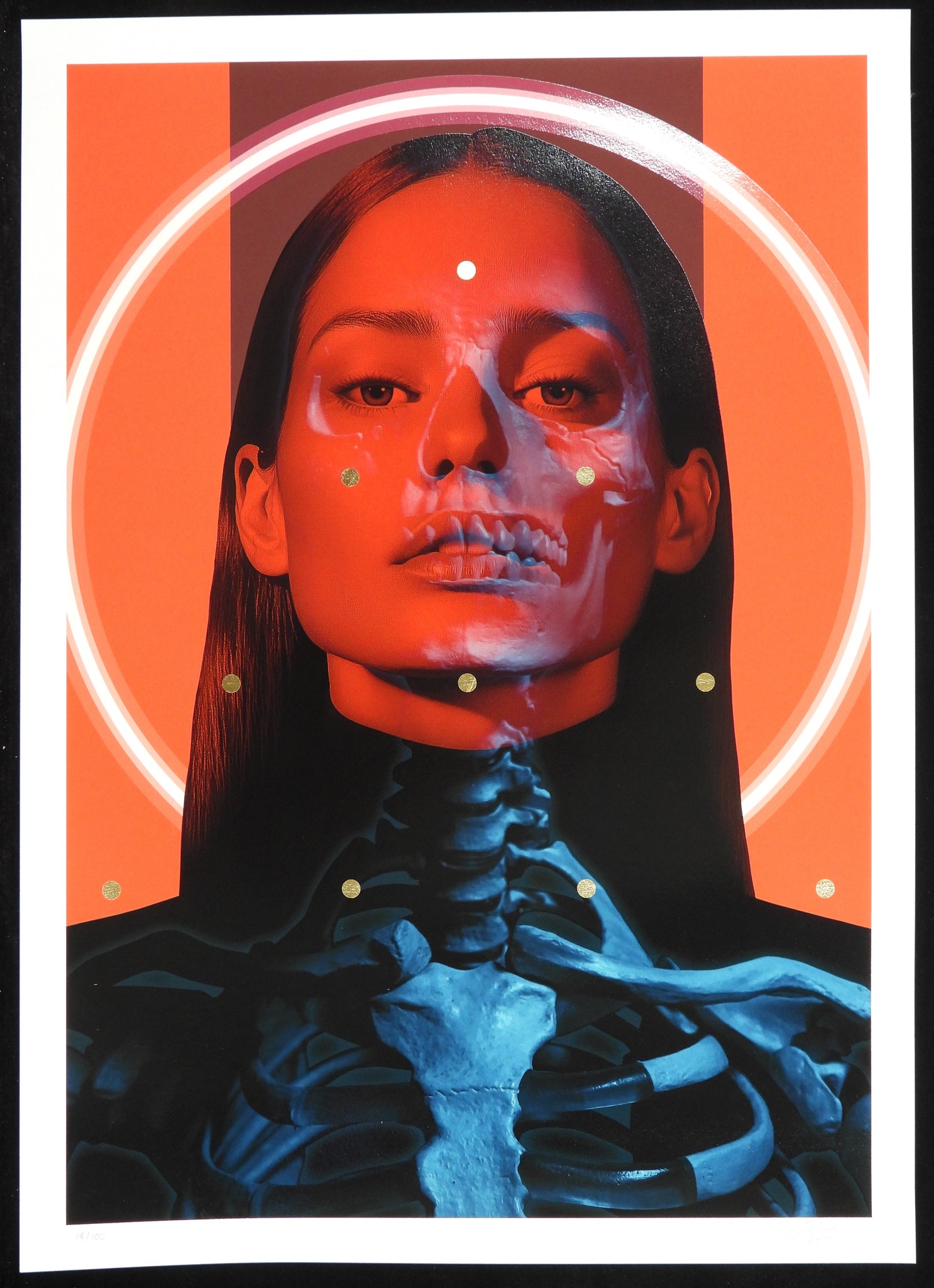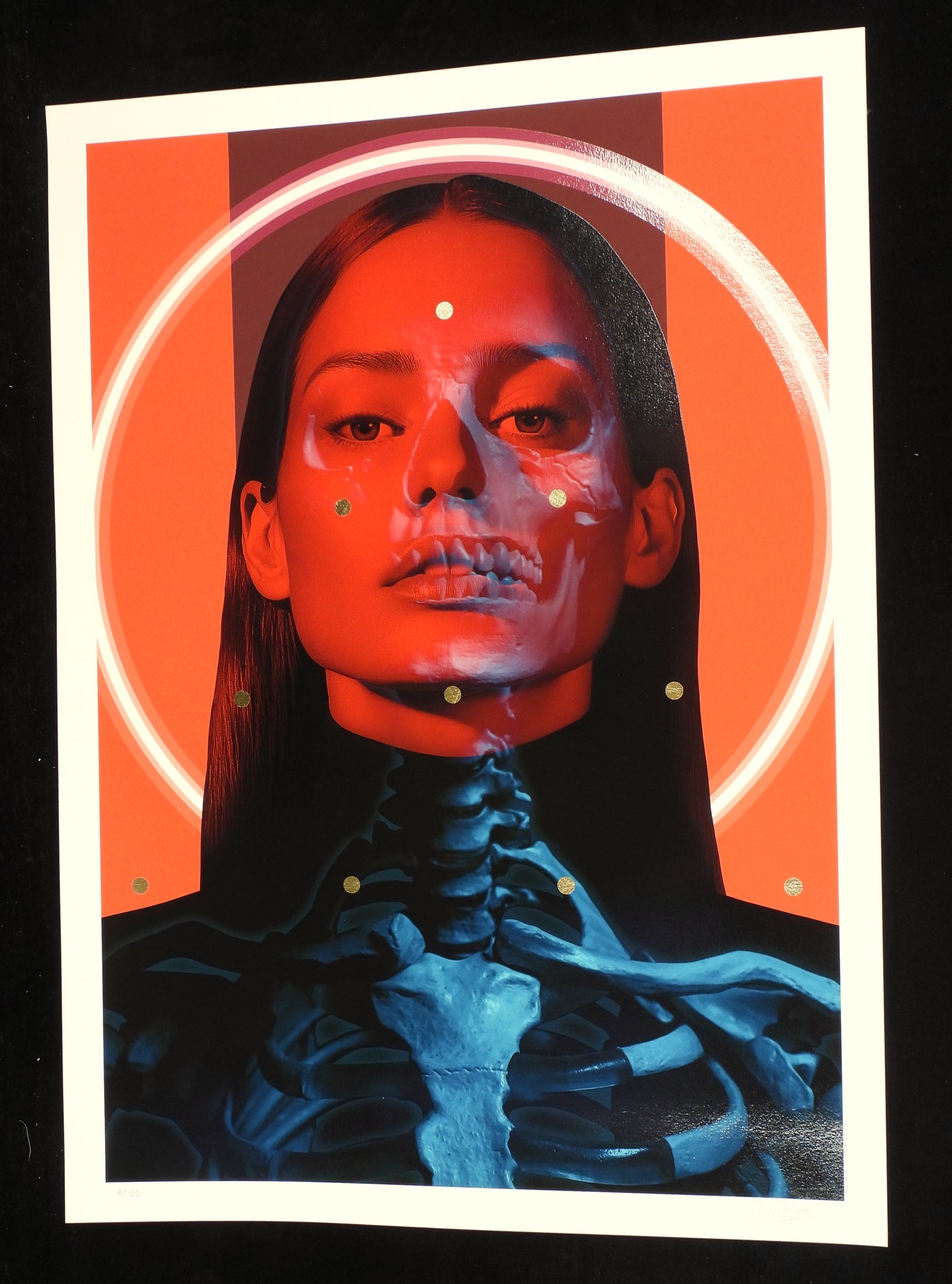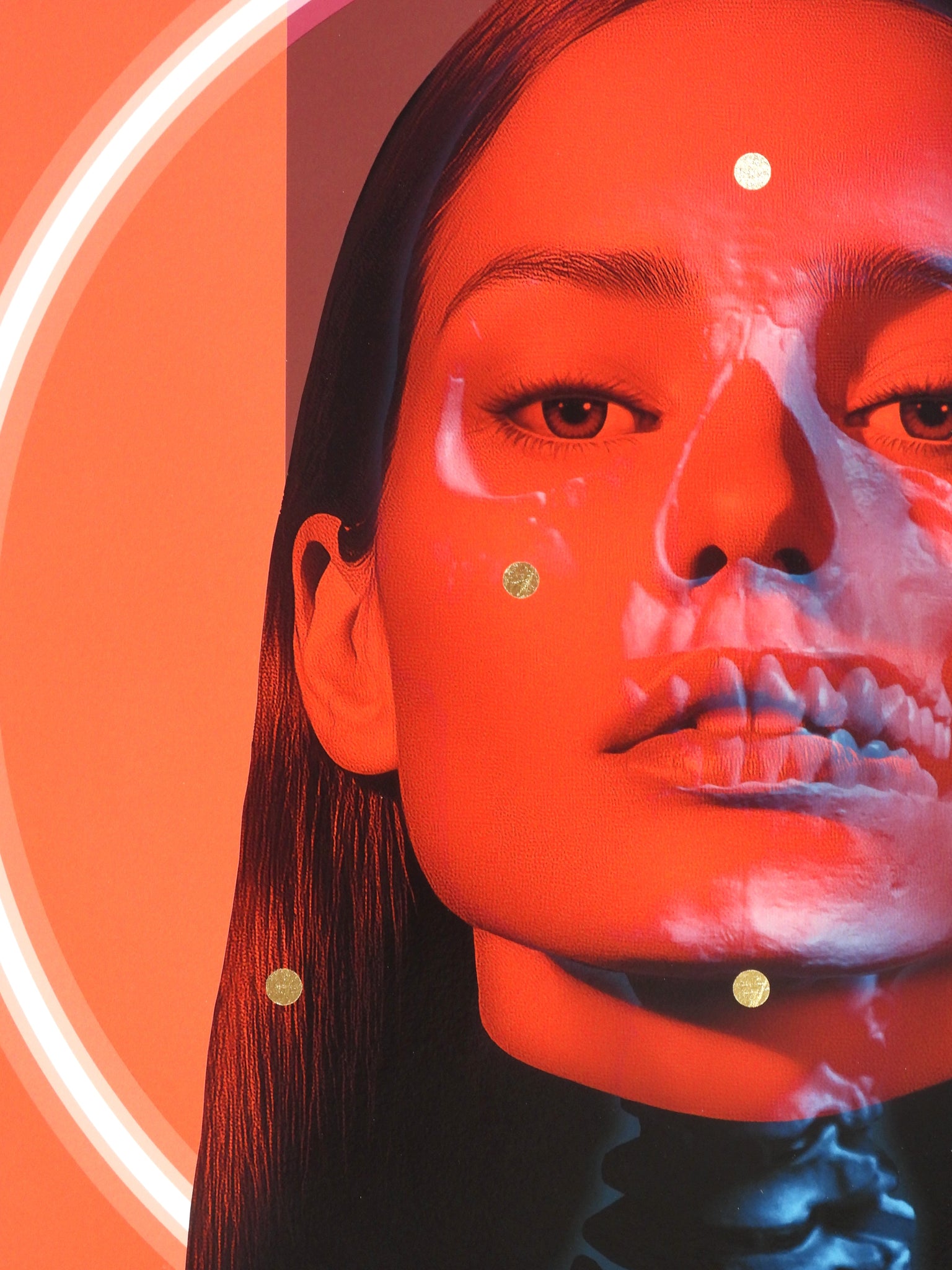 digigraphie et Sérigraphie avec feuille d'or + lunettes bleu rouge / digigraph and screenprint with gold leaf + bleu red glasses